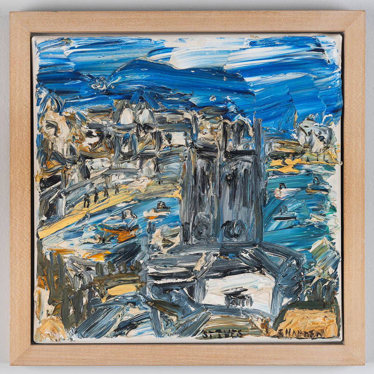 An expressionist painter who paints contemporary scenes from everyday life, Sean Hayden was born and is based in Cornwall. His inspiration lies in the scenes and experiences of everyday life. Buildings and locations have a profound and personal influence. Capturing a scene with its hustle, bustle, colour, vibrancy and excitement is of particular importance, eg in his paintings of Cornish scenes such as this one, although his output is not restricted to Cornwall.