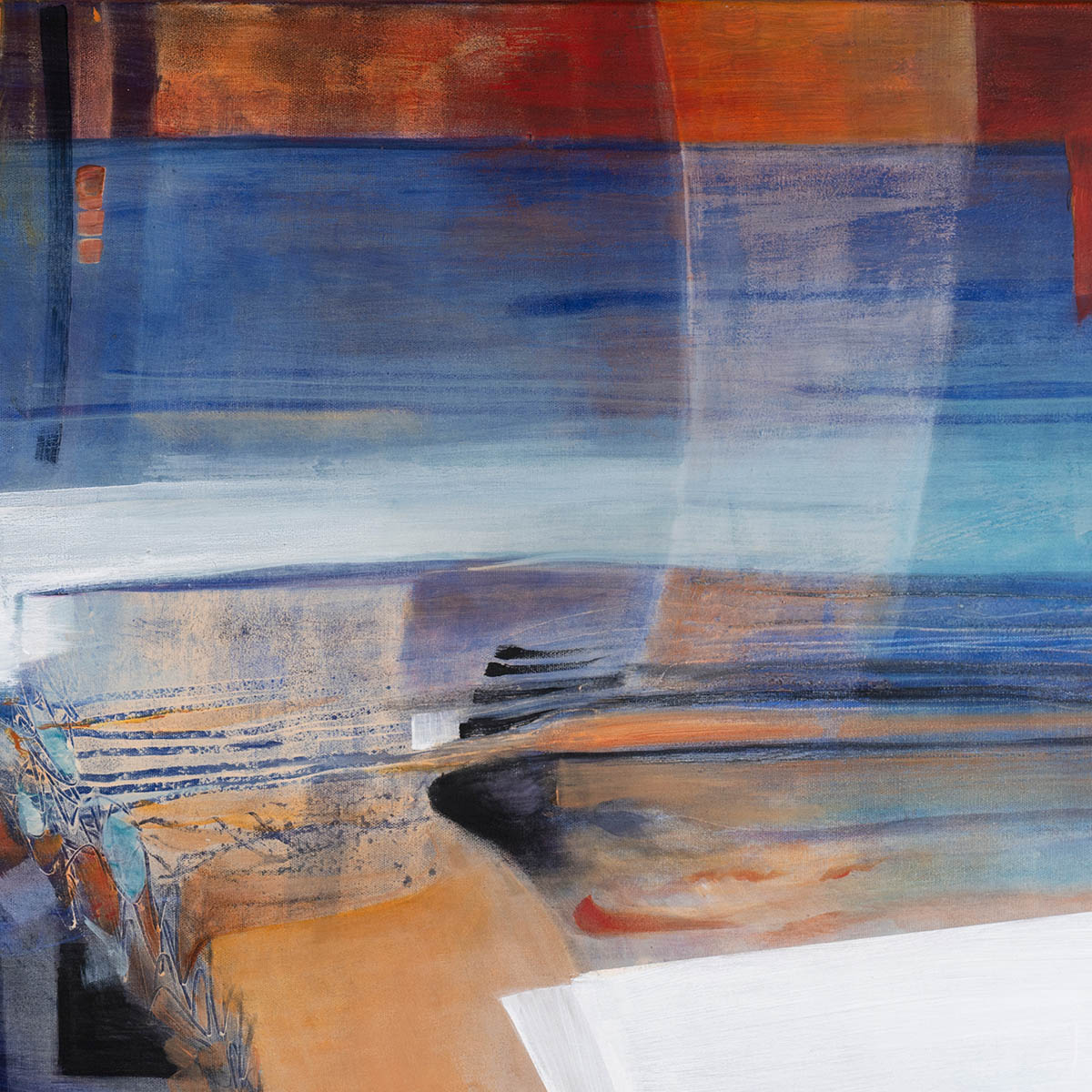Sue Davis, a Falmouth-based artist, has lived by her creative work for over 50 years and confesses to being amazed that she continues to find delight in the wealth of possibilities before her. She describes her approach as ‘Unbound’ which is elaborated in her book Abstraction Unbound (2015) ISBN 978-0-94838577-3. Her approach is an exploration, an enchantment of the unknown without sentimentality, a magic which captures images of inner feeling beyond thought or mind. She exhibits widely and has a close association with the Penwith Gallery, St Ives.