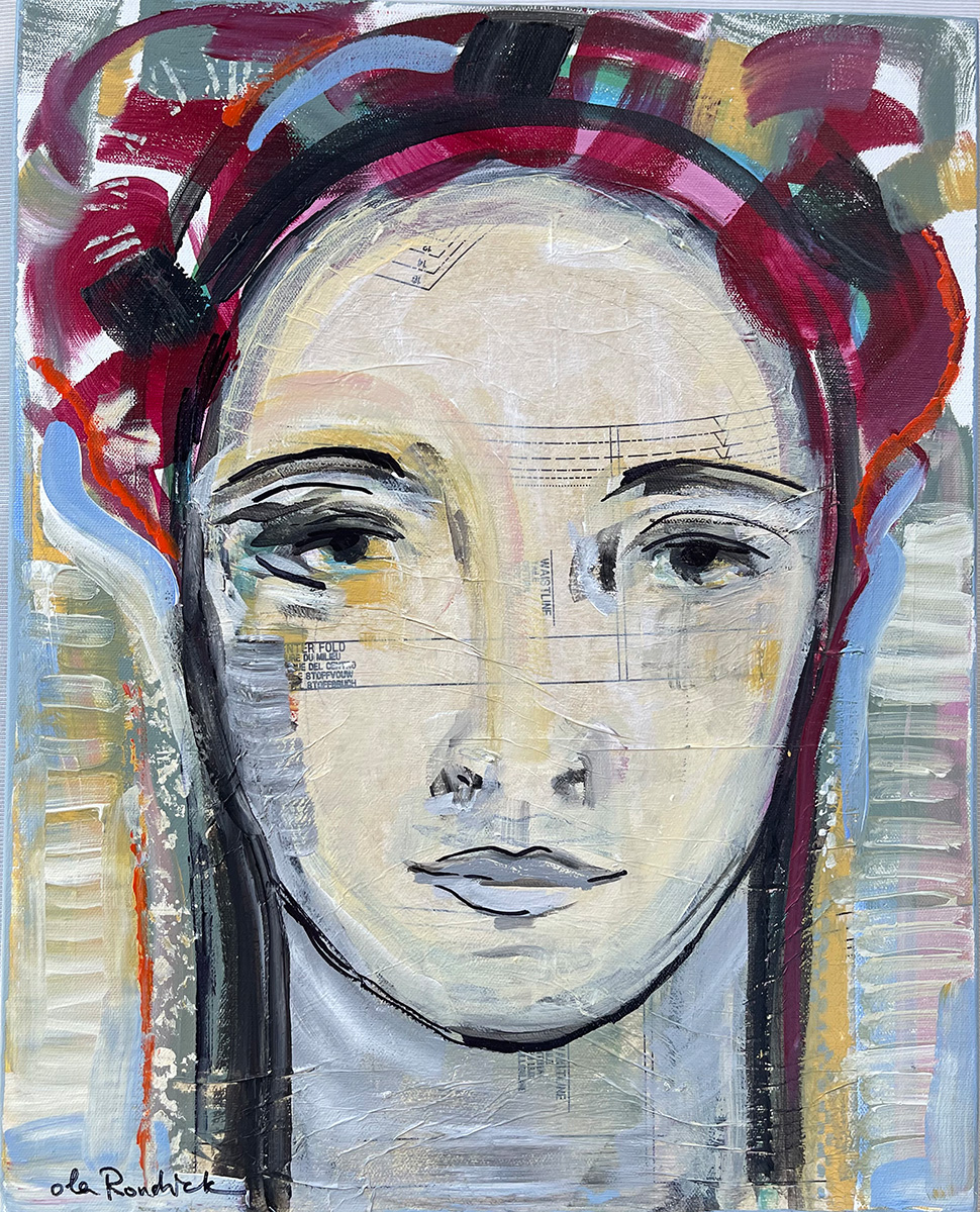 Ola Rondiak’s paintings stem from her family’s experiences living in Ukraine during the historical events of WWII, Stalin’s Iron Curtain, the Orange Revolution in 2004 and the Revolution of Dignity in 2014. These events shaped Ola Rondiak’s world view. Emotional experiences surface in her artworks as her own history intertwines with Ukrainian history and tradition, preparing the viewer with a rare "contemporary art with a historical conscious." As stated by Kathrine Page (Delaware Contemporary Museum), Rondiak “harvests a bold new, deeply personal prototype emblematic of feminine tenacity stitched in truth through the thread of her own story. Rondiak’s creativity cuts the cloth of a new absolute beauty with a redemptive quality that clearly understands the important healing role of art and the psyche for future generations.” The female image looms large, and for Ola Rondiak, the female portrait underpins the terrain for truth and dignity on her canvases and installations. "Her large ultra-flat paintings derived from Byzantine medieval mural painting offer a local shared symbology imbued with historical reference, made contemporary by the use of Post-Modernist techniques." (Juan Puntes, Whitebox, NYC)