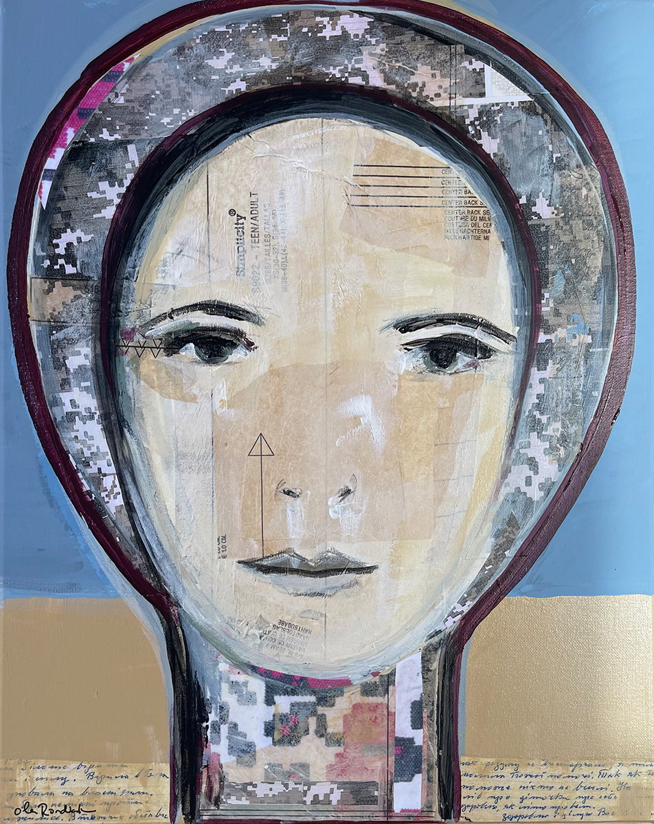Ola Rondiak’s paintings stem from her family’s experiences living in Ukraine during the historical events of WWII, Stalin’s Iron Curtain, the Orange Revolution in 2004 and the Revolution of Dignity in 2014. These events shaped Ola Rondiak’s world view. Emotional experiences surface in her artworks as her own history intertwines with Ukrainian history and tradition, preparing the viewer with a rare "contemporary art with a historical conscious." As stated by Kathrine Page (Delaware Contemporary Museum), Rondiak “harvests a bold new, deeply personal prototype emblematic of feminine tenacity stitched in truth through the thread of her own story. Rondiak’s creativity cuts the cloth of a new absolute beauty with a redemptive quality that clearly understands the important healing role of art and the psyche for future generations.” The female image looms large, and for Ola Rondiak, the female portrait underpins the terrain for truth and dignity on her canvases and installations. "Her large ultra-flat paintings derived from Byzantine medieval mural painting offer a local shared symbology imbued with historical reference, made contemporary by the use of Post-Modernist techniques." (Juan Puntes, Whitebox, NYC)