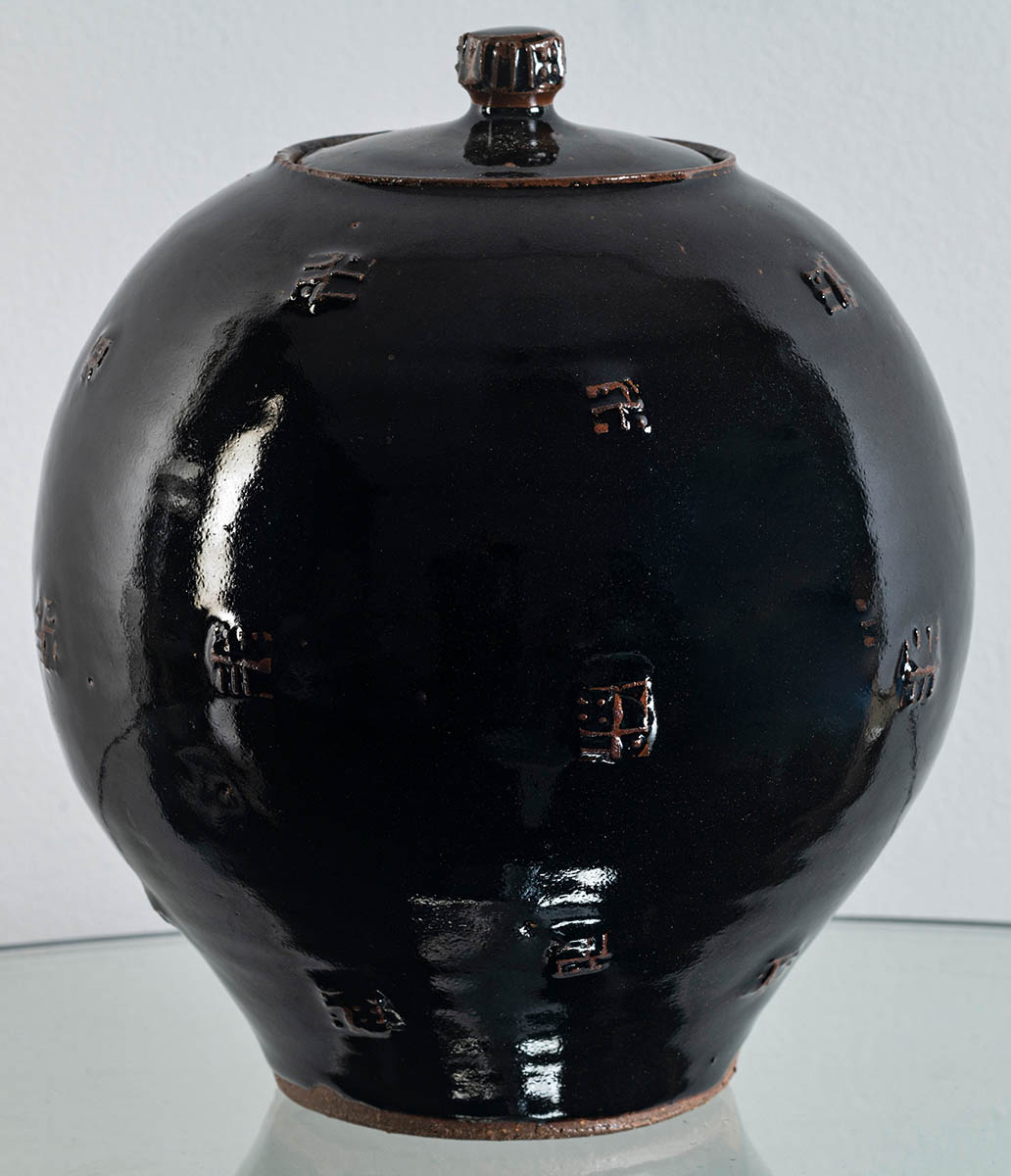Lidded jar with tenmoku glaze