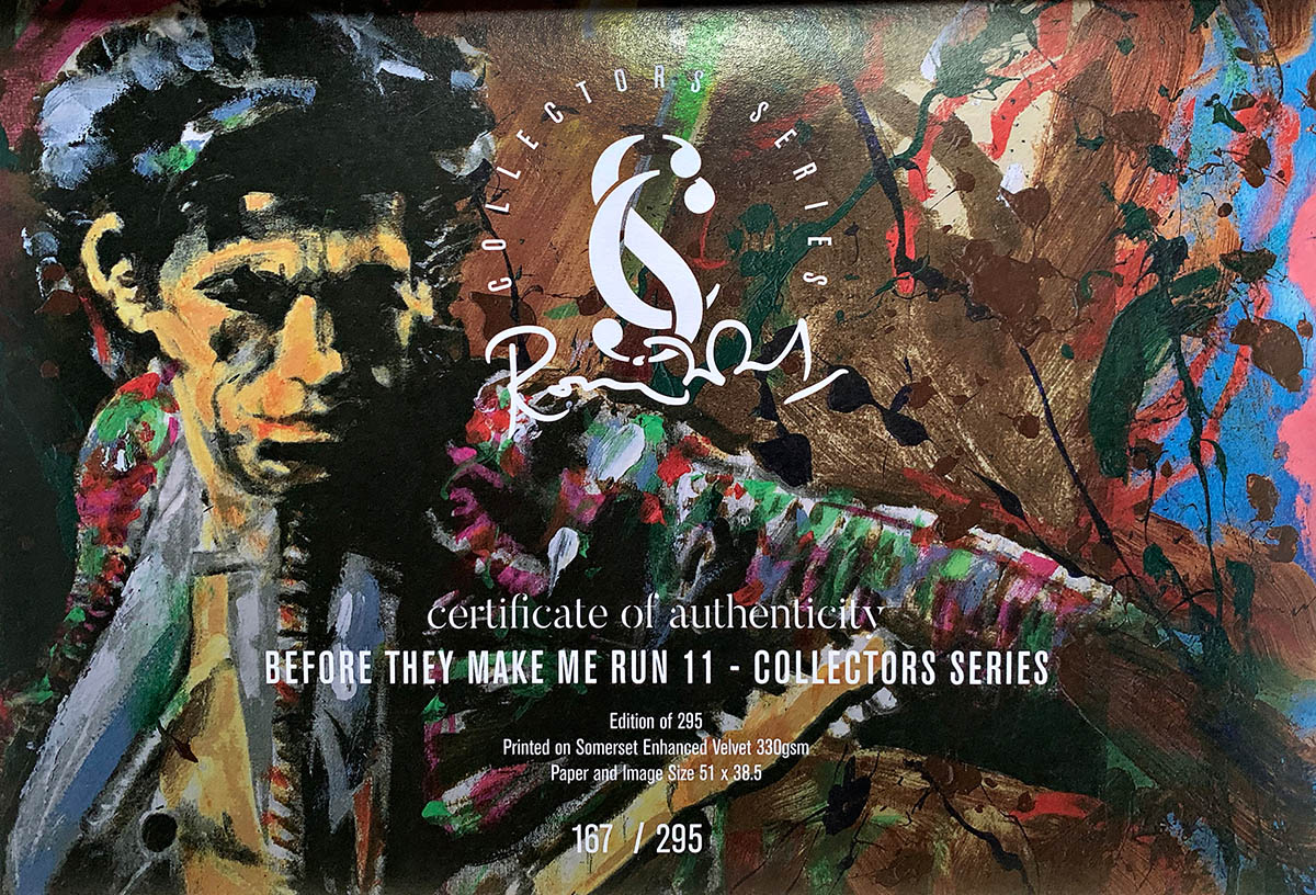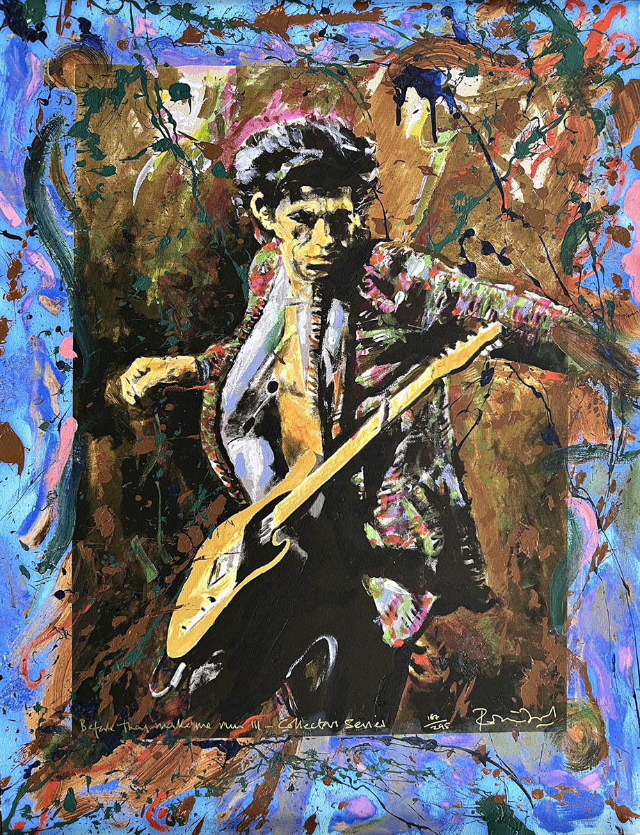 This limited edition print shows Keith Richard in his magnetic pomp laying down an open chord with trusty telecaster dangling.