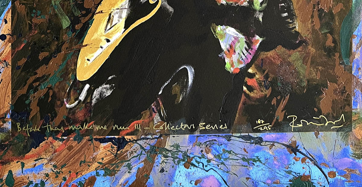 Ronnie Wood needs little introduction. A true guitar legend and one of the pioneers of UK rock music. He has been inducted into the Rock n Roll hall of fame twice with the Faces and the Stones. He is also an accomplished painter. His vibrant works bring scenes of the road and the iconic characters around him into life with a unique fluidity and charm.