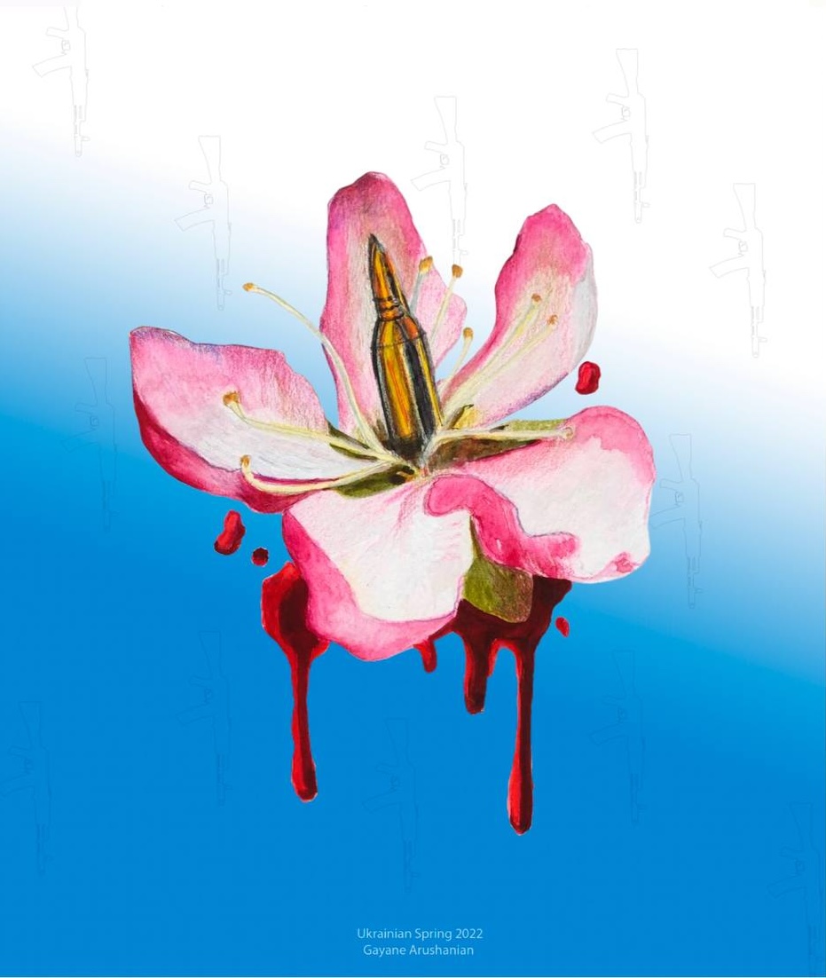 Gayane Arushanian is a Ukrainian artist with Armenian roots, based in Kyiv. 30 years ago, her parents came to Ukraine because of the war in Nagorno-Karabakh, so she experienced the war since childhood. For 30 years of living in Ukraine, she realized that life is the most important gift and she wants to study life through art. She connects the laws of mathematics, psychology, philosophy and human physics in her art.