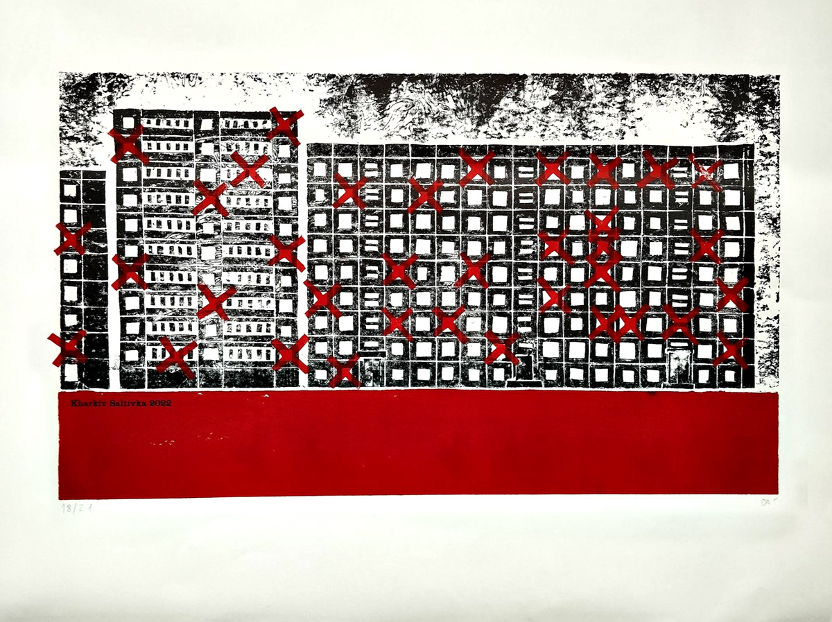 Olesia Kryvolapova is a graphic artist and illustrator from Kharkiv, Ukraine, currently living in Oxford, UK. She works in traditional printing techniques such as etching, linocut, woodcut, monotype, and collagraph. Olesia also likes to mix and experiment with different materials.