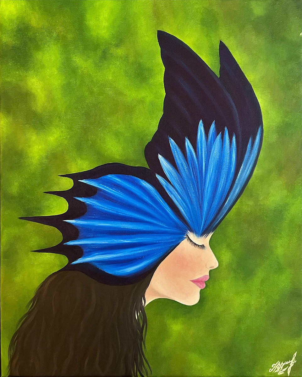 Victoriia says “The war was a huge shock for all Ukrainians and greatly affected all spheres of life. Personally, I felt fear and confusion, in the first weeks of the war I did not pick up a brush at all, but then it became my salvation from all the bad things that are happening. It was with the help of paints that I was able to pour out all my emotions on canvas and create my paintings. Each painting contains a piece of my soul.”