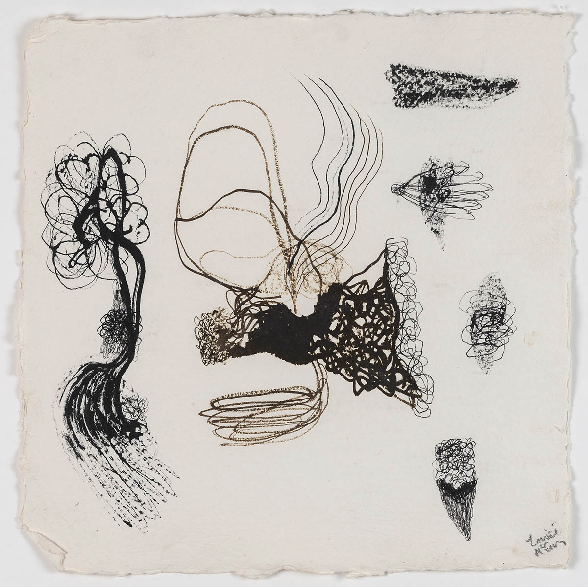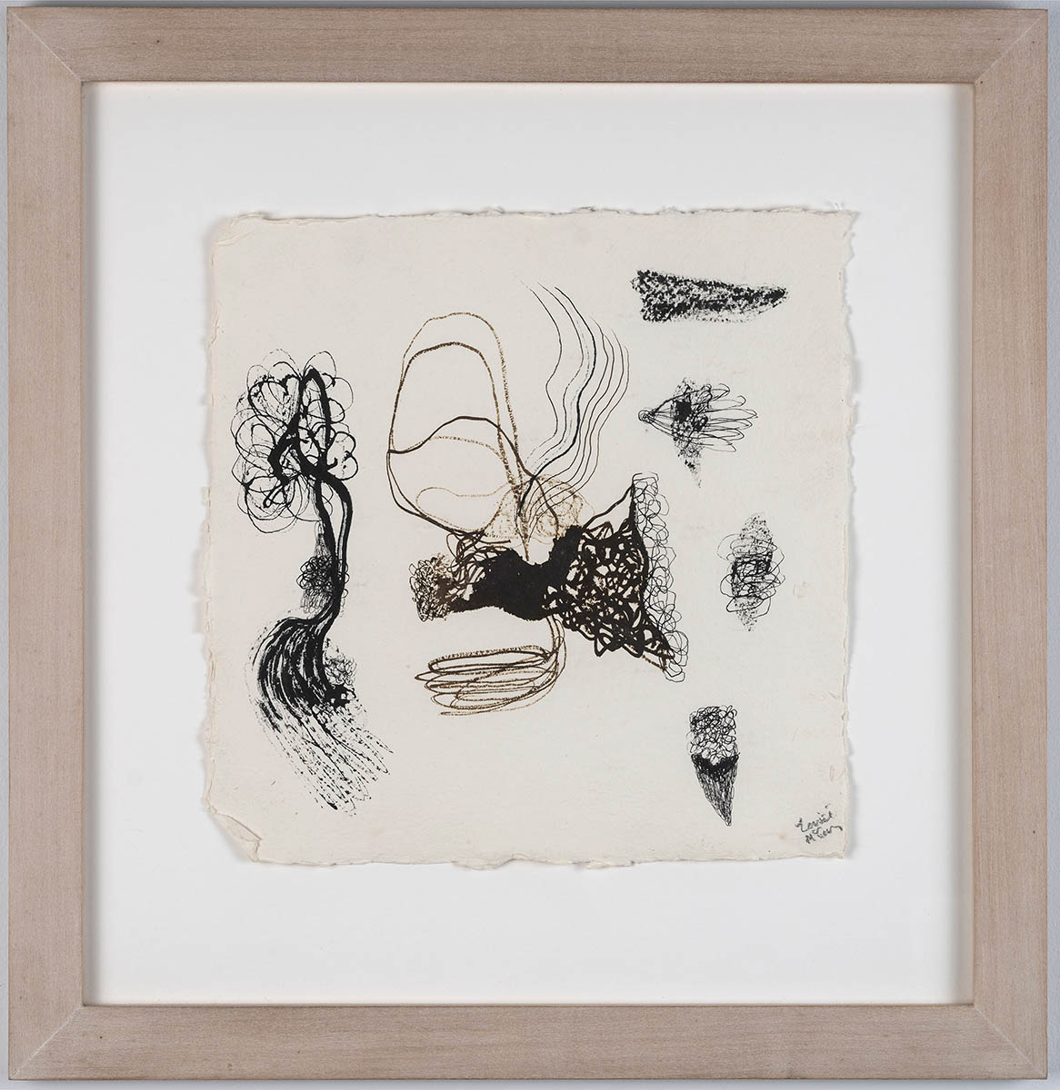 The Cornish contemporary painter, Louise McClary’s professional career spans over thirty years. Her work responds to the unique landscape of Cornwall’s Lizard Peninsula, a luxuriously tranquil place of closely wooded valleys and tidal creeks. She was elected to the Newlyn Society of Artists and is a recipient of an Arts Council of England award. She exhibits widely in the UK and abroad and is represented by Long and Ryle, London. This abstract drawing, one of a series of three, may have been inspired by the intricate shapes and textures of the natural vegetation that flourishes on the Lizard.