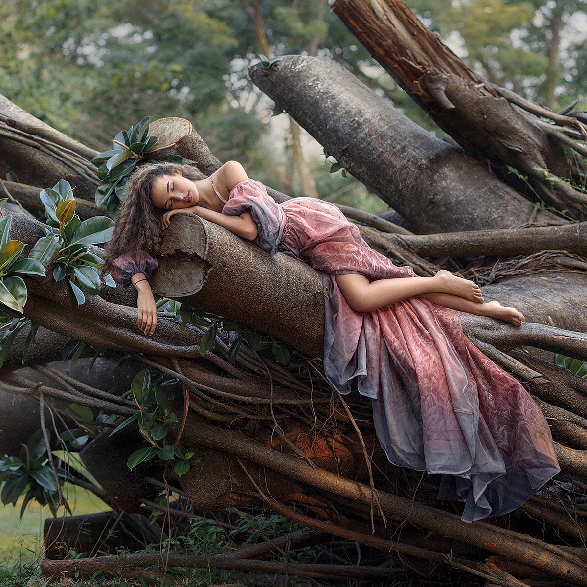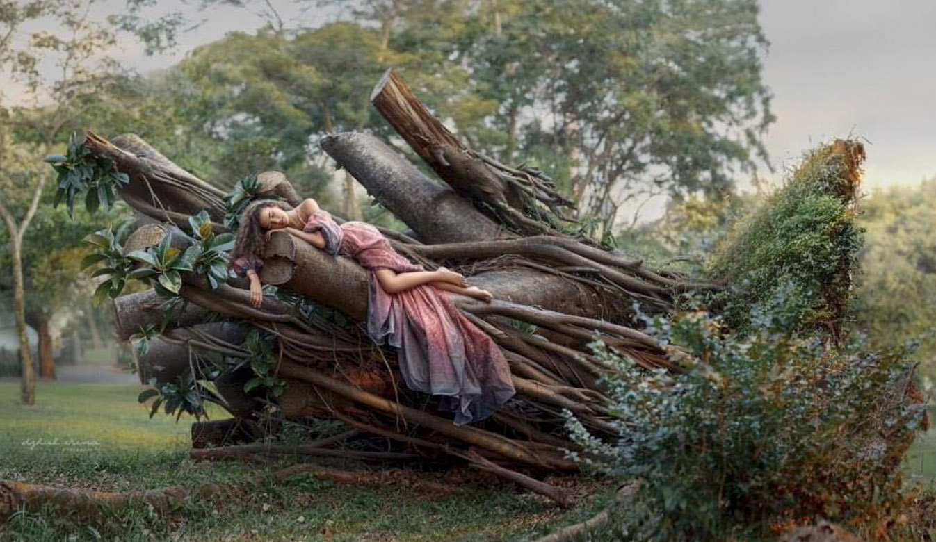 This evocative photo, taken in Brazil, captures a girl who personifies the tranquil soul of a deceased ficus tree. Resting upon its lifeless form, she emanates a sense of resignation and serenity, creating an atmosphere of peace and tranquility. The image invites contemplation on the cycle of life and the profound stillness that can be found even in the face of death.
