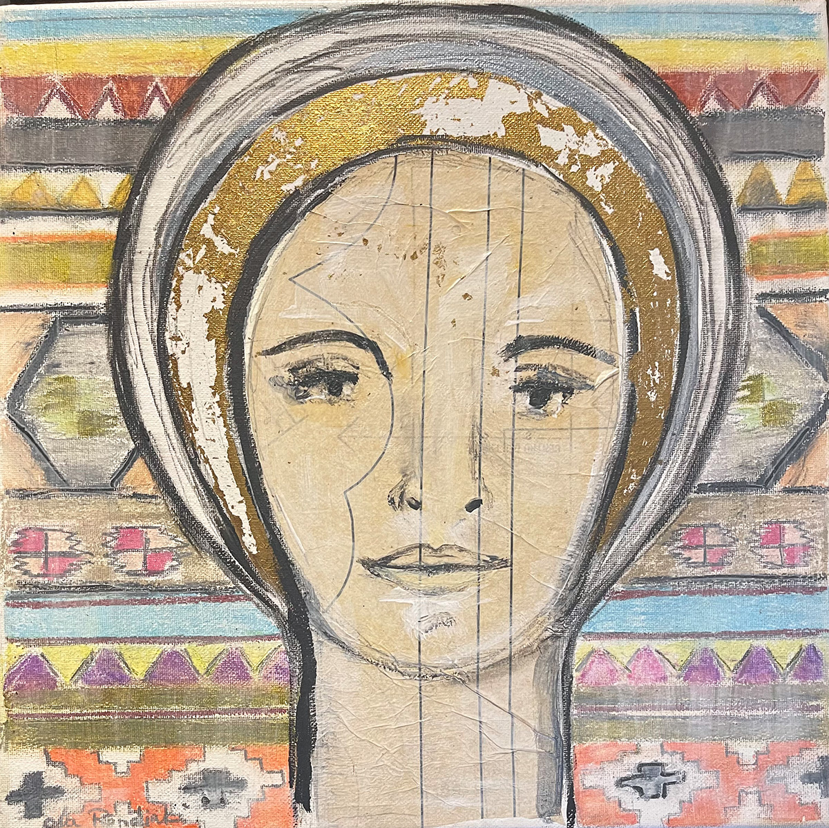 Ola Rondiak’s paintings stem from her family’s experiences living in Ukraine during the historical events of WWII, Stalin’s Iron Curtain, the Orange Revolution in 2004 and the Revolution of Dignity in 2014. These events shaped Ola Rondiak’s world view. Emotional experiences surface in her artworks as her own history intertwines with Ukrainian history and tradition, preparing the viewer with a rare "contemporary art with a historical conscious." As stated by Kathrine Page (Delaware Contemporary Museum), Rondiak “harvests a bold new, deeply personal prototype emblematic of feminine tenacity stitched in truth through the thread of her own story. Rondiak’s creativity cuts the cloth of a new absolute beauty with a redemptive quality that clearly understands the important healing role of art and the psyche for future generations.” The female image looms large, and for Ola Rondiak, the female portrait underpins the terrain for truth and dignity on her canvases and installations. "Her large ultra-flat paintings derived from Byzantine medieval mural painting offer a local shared symbology imbued with historical reference, made contemporary by the use of Post-Modernist techniques." (Juan Puntes, Whitebox, NYC)