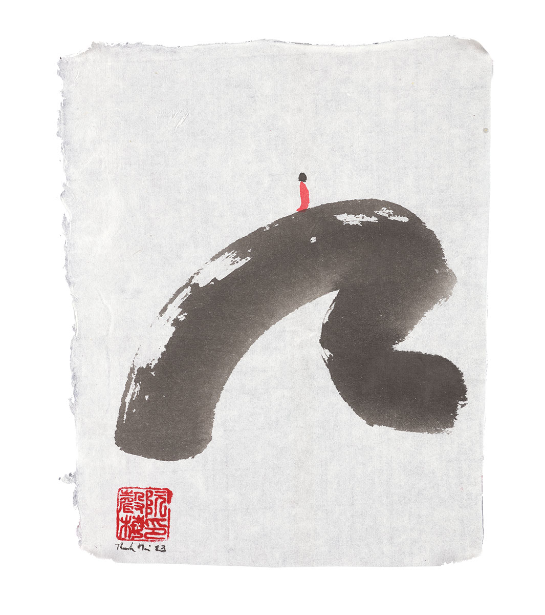 "Bridge of Love" is the first of a series and a poetic ink brush painting on rice paper that exudes the creative spirit and intuition of the artist Thanh Mai.