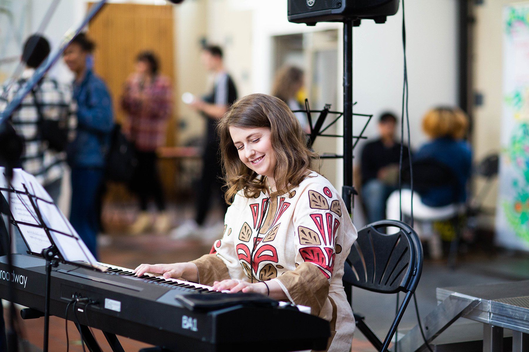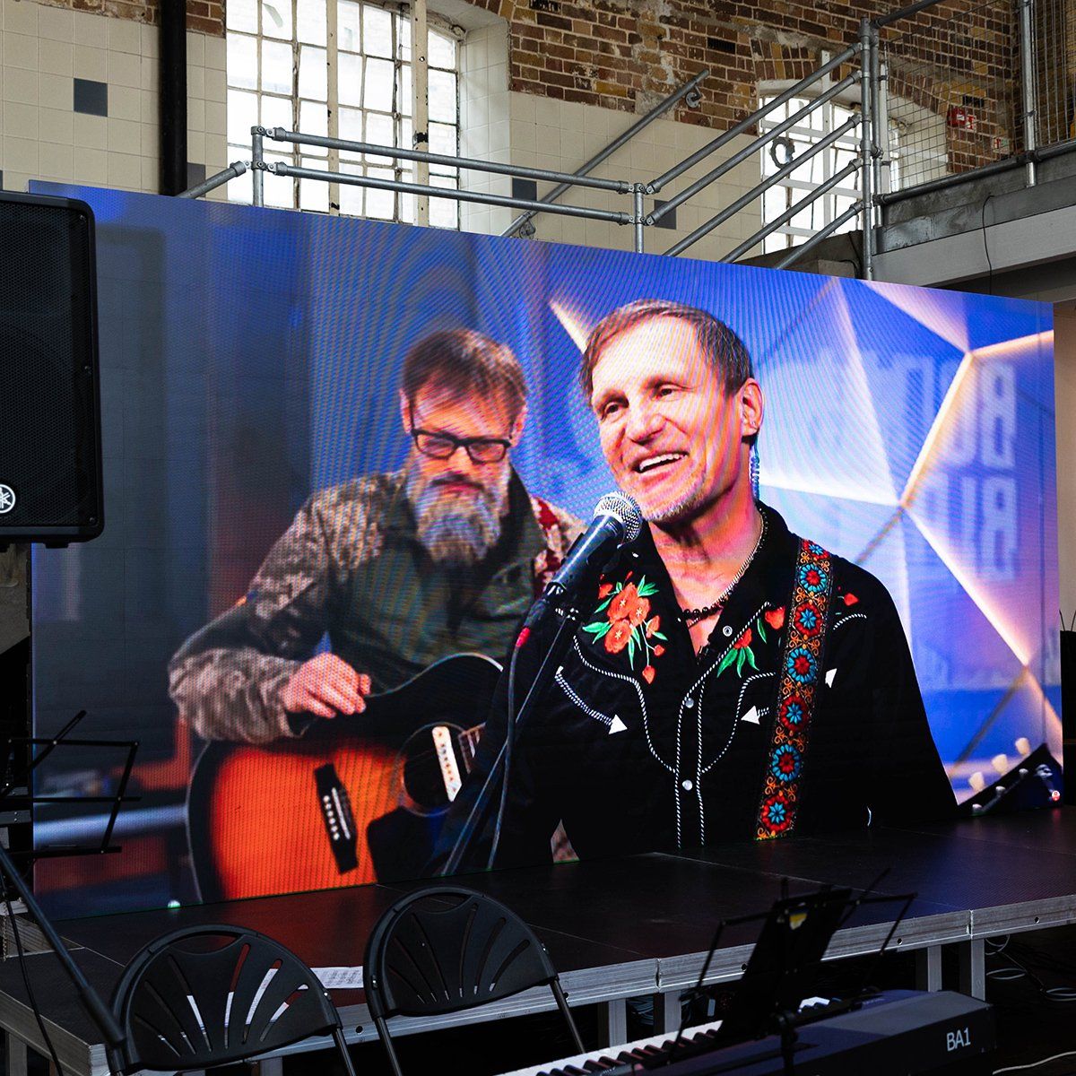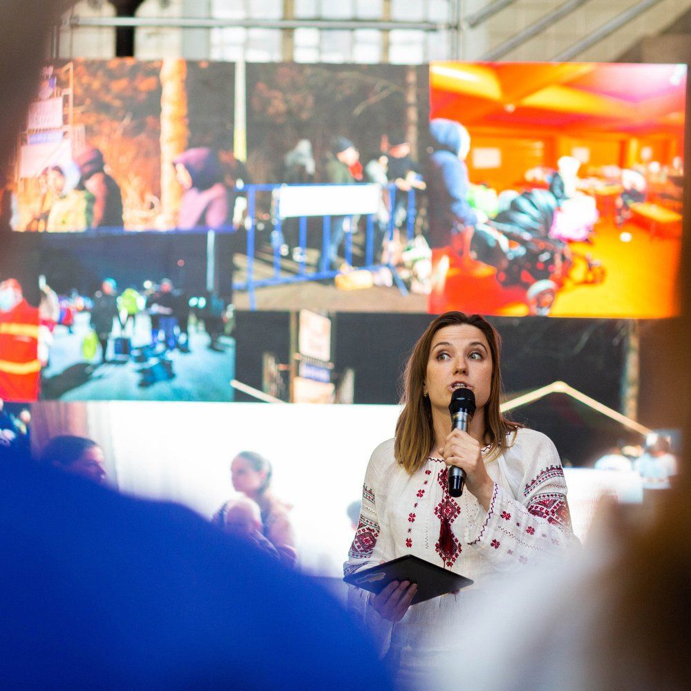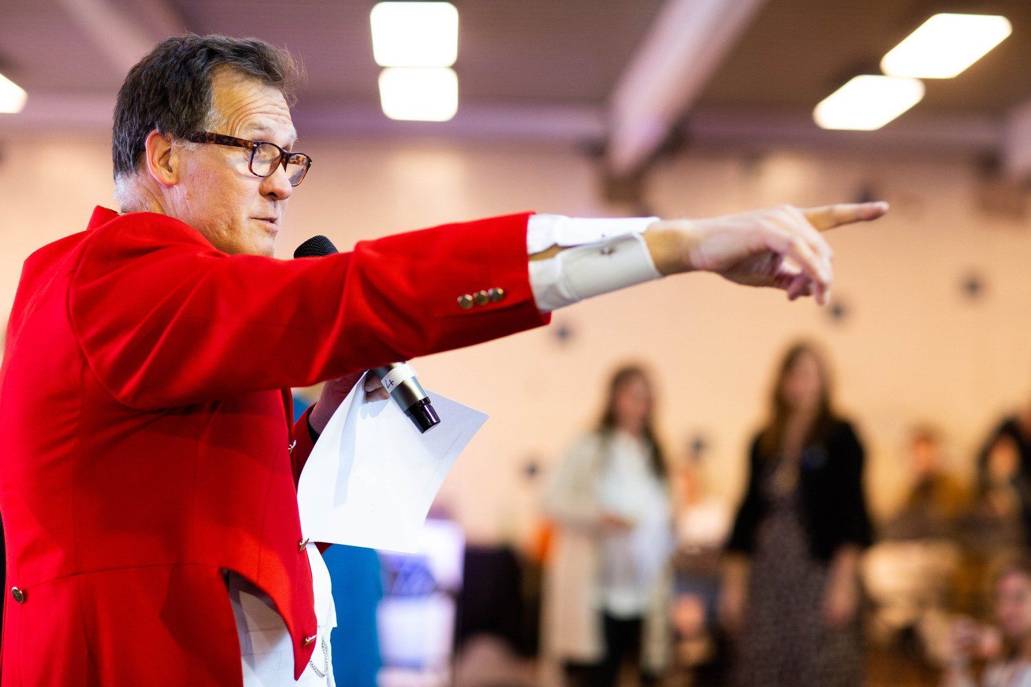 We had 450+ people come. It was a day of heart, smiles and solidarity. The music was great, a brilliant set from Ukrainian legends Vopli Vidopliassova playing live for us on a big screen, The Bloom Twins were wonderful and then we enjoyed the beautiful vocal talents of Alloise and opera singer Oksana Sliubyk. The main event however was the Auction. The man in the Red Coat James Hasler worked with the audience with humour and energy.